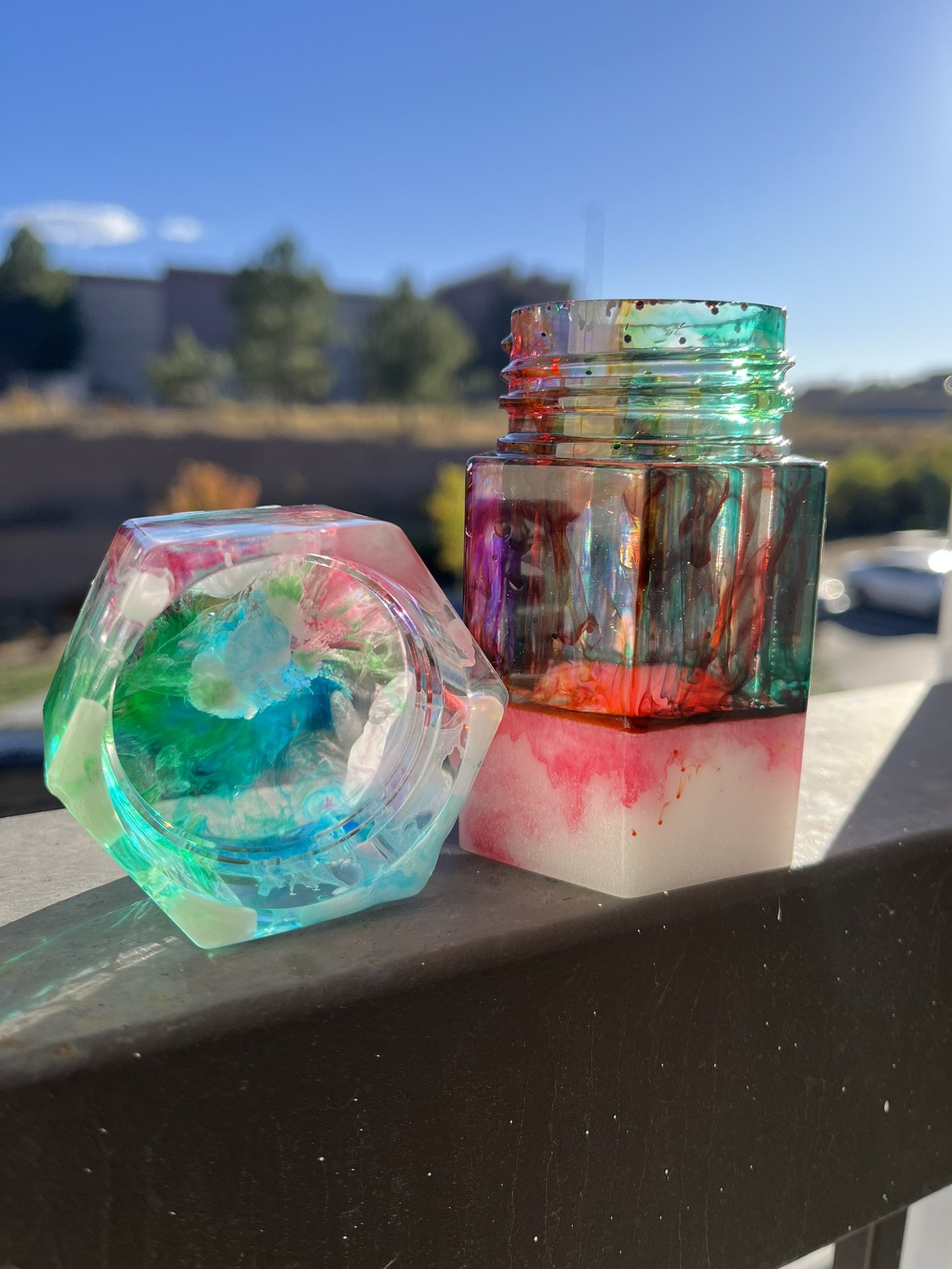 jars Categories: All Spooky Magnets Pee-Wee Skulls Holiday coasters mantel displays Keychains jars "Hello!" sweet treats nautical themes imbedded objects galaxy grinders glow-in-the-dark skulls paperweights All / Jack/Sally Nightmare Jar $15.00 Pumpkin Herb/Spice Shaker $15.00 Horror Jar #2 $10.00 Horror Jar $15.00 Blood Moon Jar (with Moon-Dude) $20.00 "Coney Island" $20.00 "Skating Rink" $20.00 "Jazz" $25.00 PPG Jars $45.00